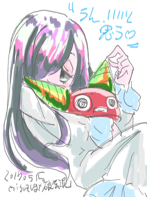 なんかさすがにちょっとこういうのばかり増やしてもしょうがないから 来週はもうちょっとちゃんとしたのを書こう せっかくだしさ 5/20 というわけでraytrektabせっかく買ったので この二週間ぐらい電子ノートの変わりに持ち歩いて 電車での移動中に落書きしていました ウィンドウズタブだから描いた片っ端からネットにあげられるのはいいのですが やっぱ液晶が明るいし電子ノートよりもでかいので かなり恥ずかしいですね 8インチというサイズはデモ機観たときは小さすぎるって思ったけど 実際使うと持ち歩いて落書きするにはこれよりでかいと 取り回しがたぶん面倒になるので悪くない感じ 携帯性と周りの目を気にせずかけるという点では やはり電子ノートのほうが良いと思う バッテリーとセーブ気にしないで住むもんな電子ノート という訳で落書き せっかくだから二次創作多めです パズドラXのチャロくん