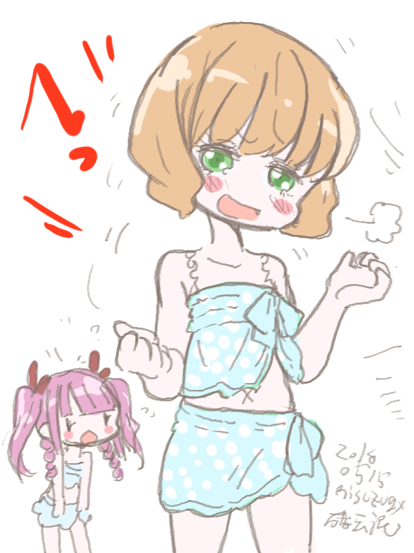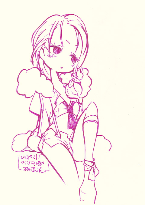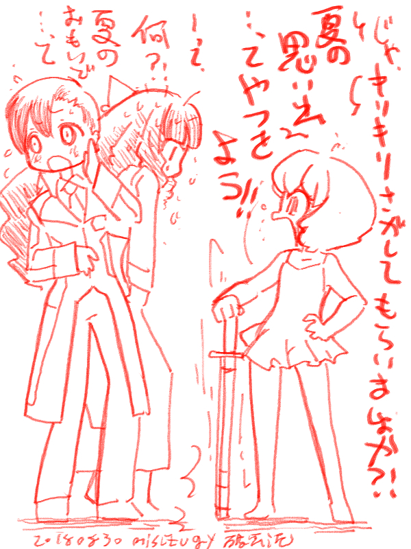 でかいサイズはイラスト部屋へ そんなわけで2時間越える作品はちょっと 見に行くまで腰が重いのですが えいやっと見に行ってきました ・空海 予告から予想される 「空海が解き明かす阿倍仲麻呂と楊貴妃を巡るラブサスペンス」 ・・・を期待するとやや肩透かし いや、確かにそういう要素はあるし 「30年前の楊貴妃の死を巡る秘密」 を空海らが解き明かしていく内容でもあるんだけど どっちかって言うと化け猫が巻き起こす 怪奇譚といってしまったほうが良い 原題も「妖猫伝」だし。 楊貴妃の死にかかわったものへの復讐と 死の真実を伝えのこしたい妖猫によって 空海たちが導かれる物語だしね 栄華を誇る唐の広大さを感じさせるセットをはじめとした美術はよかったものの どうも「吹き替え」がマッチしていない 何か駆け足というか台詞に無理があるのか 正直全く内容が頭に入ってこない 字幕上映が見当たらないので吹き替えで観たんだけど これ、絶対字幕で見るべき作品だろうなあ 全体的にテンポもイマイチなのもちょっと気になった とりあえず見終わると「猫映画」の印象しかない(笑) いい声で凄む敵役なのに つねに瞳がまん丸で可愛いし、ずーっと喉をゴロゴロ慣らしてるし とにかく猫可愛い映画。楽しみ方間違ってるわ 3/5 というわけで映画 ・さよならの朝に約束の花をかざろう 岡田麿里初監督作品ということで不安半分、安定感半分で視聴 「演出家ではない人」の初監督長編映画という不安と 「あのはな」「ここさけ」に引き続き、 今回も予告で「感動」をプッシュしているのが猛烈に不安だったけど。 (「ここさけ」は予告編未試聴で本編見たほうが楽しめると思う) 少なくとも脚本部分に関しては安心できるだろうと楽しみにしていた 長寿の民の少女(本当に少女)が母親になり「息子」を看取るまでの物語 思ったよりもきちんとまとまっていて話も取っ散らからず 最後までじっくりと見れたのは良かった ただ、やはり「オチが長い」というか全体的に 「どのシーンも入れたいけど、ごこも削れずオチを引き延ばしてしまった」感はある ED後のカットも「いれたかったのだろうなあ」というのはわかるんだけど 正直なくても良かったのではと思わなくもない あと、不必要ではないけど妙に冗長に感じる部分がちらほらあって そういう「至らない部分」は脚本のパワーで押し切ってる感じ しかし、これから本編上映するのに 「試写会感動率○○パーセント」とか煽り入れた予告編を流すのなんなんだろうね あれさえなければもうちょっと評価高かった(笑) ・映画ドラえもん のび太の宝島 新ドラになってから毎年見てる映画ドラえもん (駄作と傑作が交互に来るのでなかなか視聴をやめるタイミングが掴めない) 予告から海洋冒険モノを期待していたんだけど、 そういう意味では期待外れ。 父子の物語、親子の感情のズレ(確執)の物語としては良く ドラえもんの秘密道具はあちこちで素晴らしく活躍し のび太をはじめとしたいつものメンツの活躍どころも用意されている しかし突如太平洋に出現した島に宝を探しに行く海洋冒険モノとして始まりながら 中盤から「来るべき人類滅亡を悲観した超未来人によるノアの箱舟計画」のはなしとなり 「未来の人類を助けるためにの宇宙船のエネルギーを確保するため 過去の地球の活動エネルギーを奪いに来ている」という 何かおかしな話になってしまっている 途中で物語の様相が変わってしまったせいか 序盤の勢いはどこへやら、中盤に大きなダレ場ができてしまってるのも残念 全体としては面白くまとまりも悪くはないのだけど 見終わってみると「でも見たかったのはこれじゃない」と感じてしまう なにより「冒険」が描かれていないので 序盤も「無理やり推し進めている」感じが強く ワクワク感がしないのもよろしくない ママに宝島への冒険を否定され 「そういうのは宿題を済ませてから」とまで言われてるのに 「みんなでキャンプに出掛けたことにしている」というドラえもんのフォローもおかしい (こういう蛇足が妙に目立つ) 今回のキーアイテムとなる「フレンチトースト」 じっとりとした質感と重さを感じさせる描写が素晴らしく 冒頭パパが食べていたカルボナーラと並び 見ていてむちゃくちゃおなか減ってきて困った 食堂で焼いているバケットもだけど 食べ物の描写が今回かなり良かったよね きちんと物語にも絡んでるし なんともちょっともったいない感じの映画だったなあ 3/1 二月中に描いてたけどっぷするの忘れてたいつものやつ