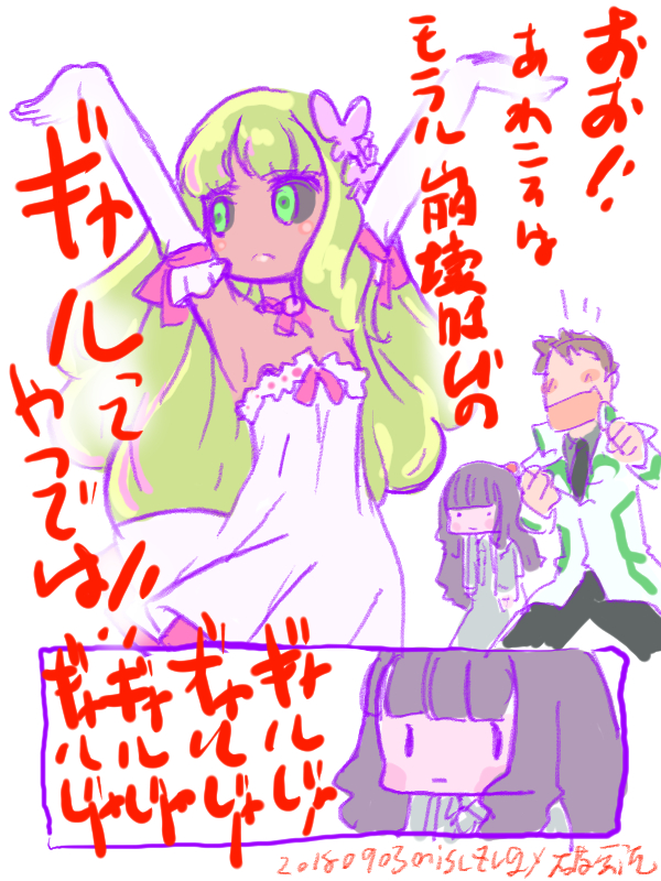 06/09 ・ヤマト2202第5章煉獄編 おそらく今回のシリーズで最も「ないわー」ってシーンが無かったので かなりストレス無く楽しむことが出来た (とはいえ第十番惑星の避難民がなんか倉庫みたいなとこに押し込められてたのには閉口したが) 過剰な軍拡により波動砲大艦隊を要した地球と 大艦巨砲主義に傾倒するガトランティス 波動砲の拡散モードと収束モードの使い分けも 地球艦隊を軽く凌駕するガトランティスのどうしようもない強大さはも良く 「愛あるがゆえの過ち」を描く結末も良い しかし秋からのTV放送が決まったせいか いままで以上に作画が荒くなった感じだなあ 白色彗星帝国。さすがに旧作とはビジュアル変えてきたけど 超巨大戦艦が凄くわかりやすく突き刺さってる(笑) テレサが「高次元の存在だからこの次元に顕現したら宇宙が崩壊する」 というところから結末は「さらば」ではなく「2」のほうなんだろうな やたらテレサの描写が宗教じみてるなあとおもったんだけど ヤマトクルーを「殉教者」に見立ててるからか 次は11月で最終章は来年になるらしい 2199みたく終盤TV放送のしわ寄せでグダグダになったりするなよう ・レディプレイヤー1 「ガンダムとアキラの金田バイクが出る」と話題だった作品 公会前後で「俺はガンダムで行く」に言及する感想しか上がってこなかったので 見なくていいかなあと思ったんだけど 最近ちらほらと視聴意欲をくすぐる感想を見かけたので えいやっと見に行ってきました 結論から言うと面白い 面白いんだけど、エピローグが大幅に蛇足っぽいのと ビジュアル的な面白さが「最初のレースの”正解のコース”」で力尽きた感じなのが残念 あと、洋画でも「ネトゲの友達がリアルだとご近所さん」の呪縛からは逃れられないのね 5/31 町で見かけた女の子
