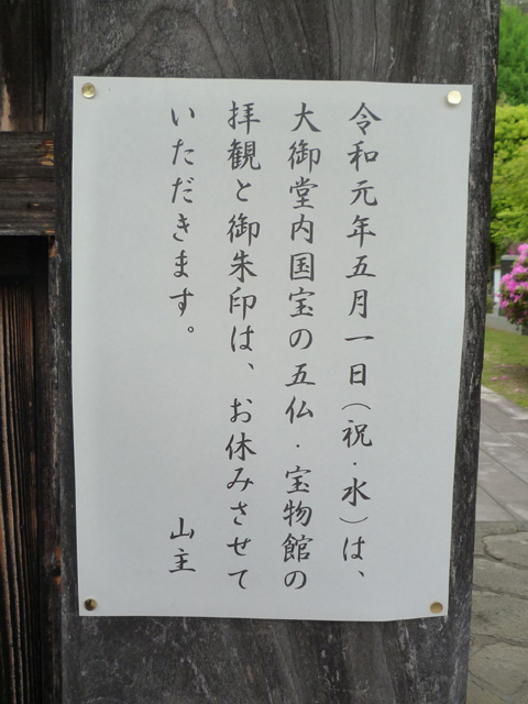 というわけで改元一発目は運慶の五体仏がまつられる願成就院にしようと出かけたのですが おやすみでした。がっくり 出かけるときは雨は上がってたのですが結局本降りになっちゃいましたしね