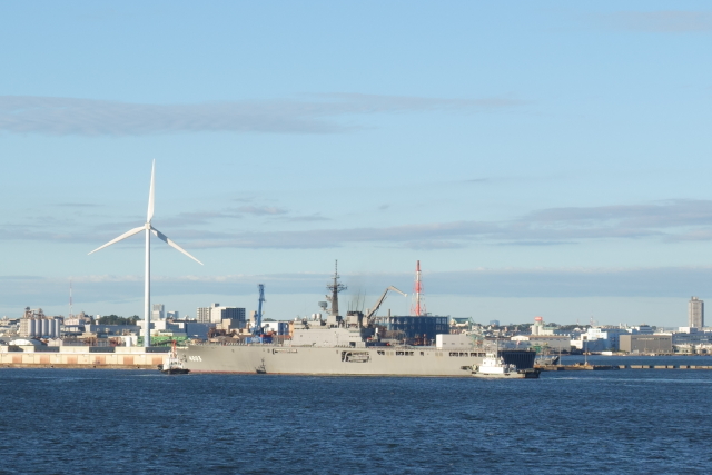 横浜港に自衛艦が入稿してましたが、番号からすると 輸送艦「くにさき」ですかね