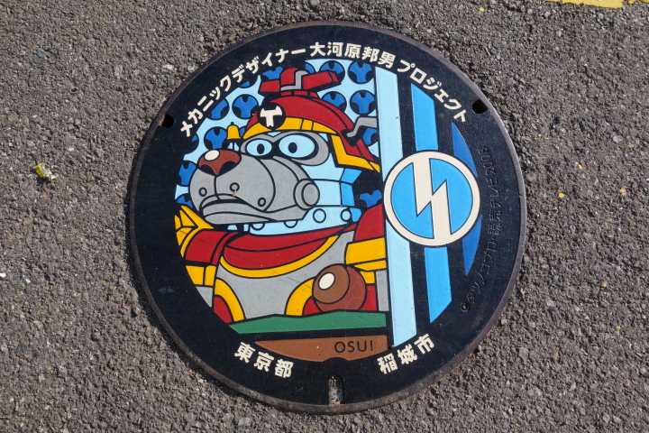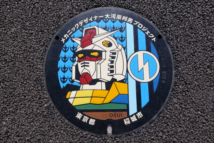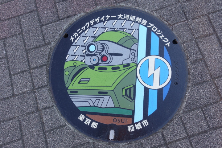 大河原邦男のイラストに忠実な立体化で これをそのまんまプラモデルにしてくれないかなあといやマジで ザクの足がいいんですよザクの足が 稲城市は大河原プロジェクトの一環で 大河原邦夫関連のモニュメントが設置されていますが 昨年矢野口駅、稲城長沼駅、南多摩駅、京王若葉台駅に オリジナルマンホールが設置されました