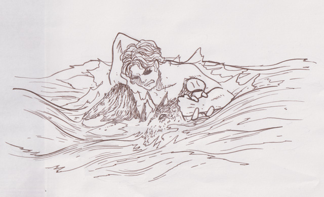 あとなんか海から這い上がってくるイノシシと格闘する絵を描こうとしたらしい痕跡