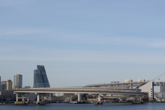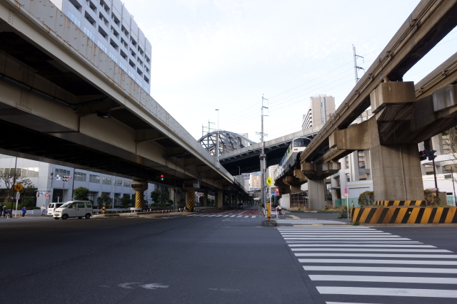 品川埠頭で東京モノレールと首都高湾岸線と貨物の高架が交差するところがいい感じ