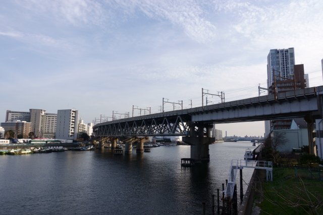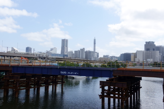 京浜運河にかかる港南大橋から見た貨物線
