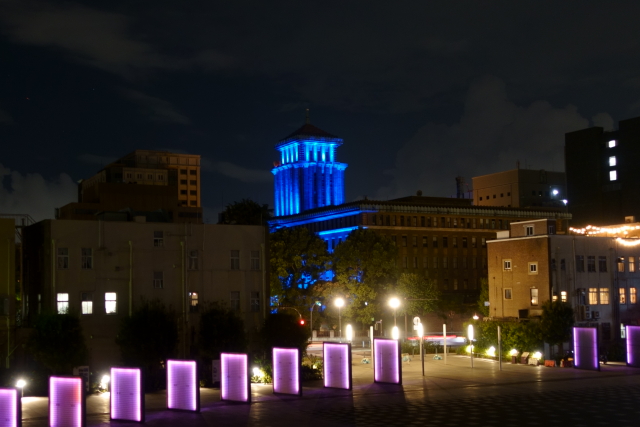 神奈川県庁。なんだろうこのライトアップ