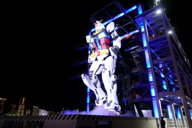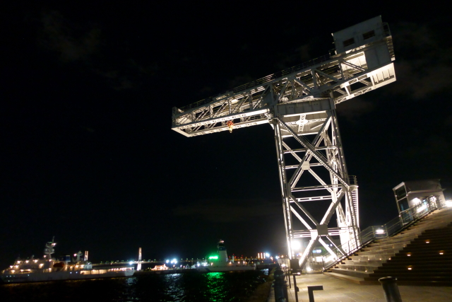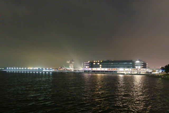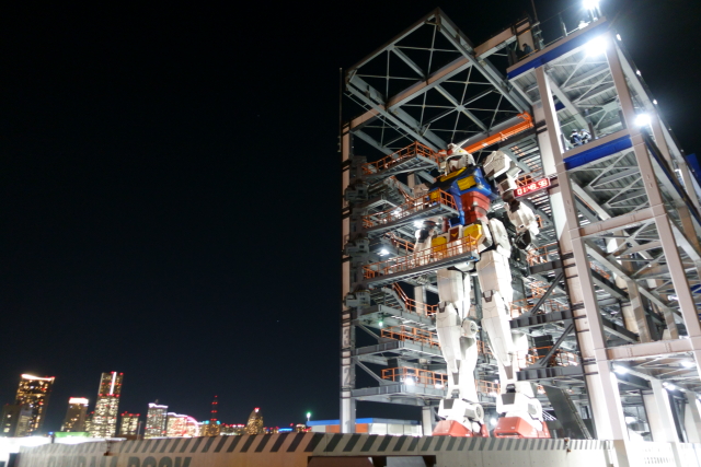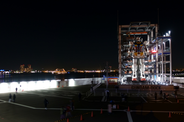 事前情報どうり夜に行ったのは正解ですね こういう夜の写真撮ってると、ほんと 望遠ではなくレンズの明るいカメラを買ったのが大正解だったと ニコニコしてしまいますね 次は夕方に行くよ! まあ春か夏あたりだと思うけど ガンダムが設置されてるのは山下埠頭なので ふだんは埠頭関係者しか入れません なのでこのアングルから横浜港が見れるのは結構新鮮です