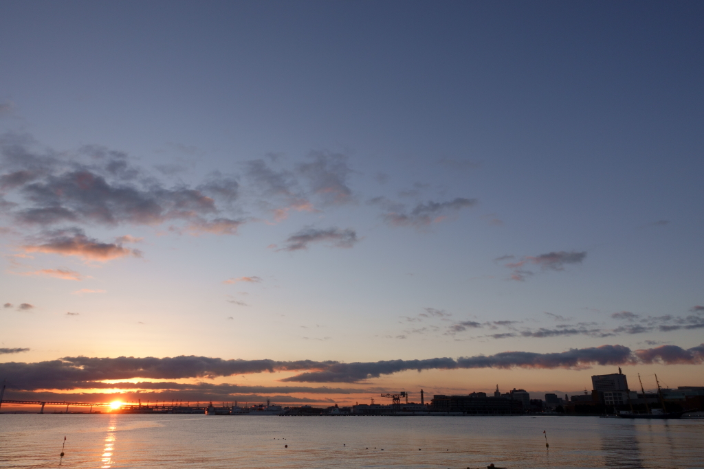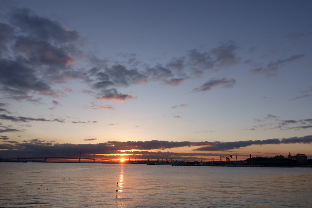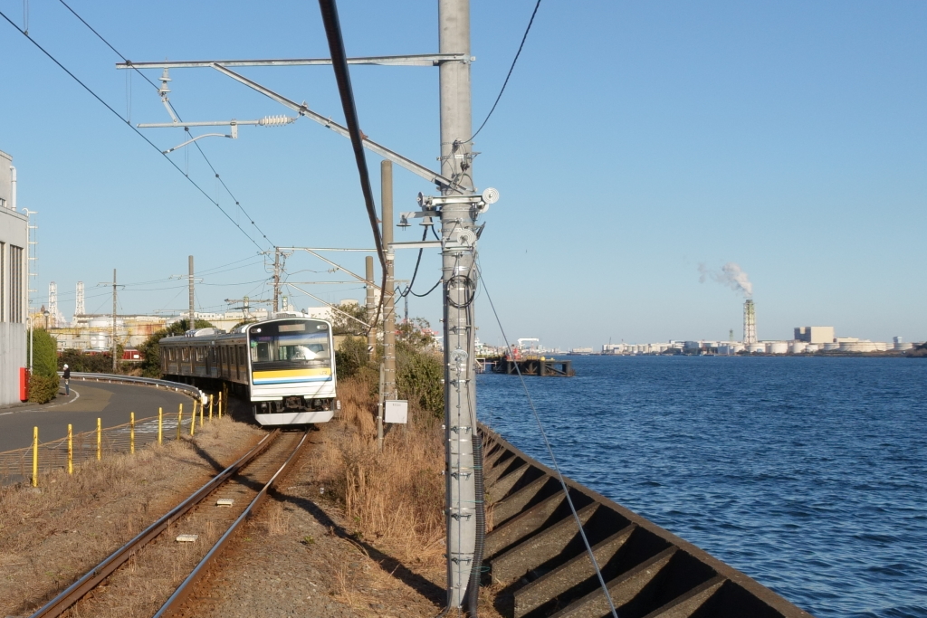 海芝浦駅からだと横浜方面に太陽が落ちるので 夕暮れ時狙うのもいいかもしれない。すごい寒いですが