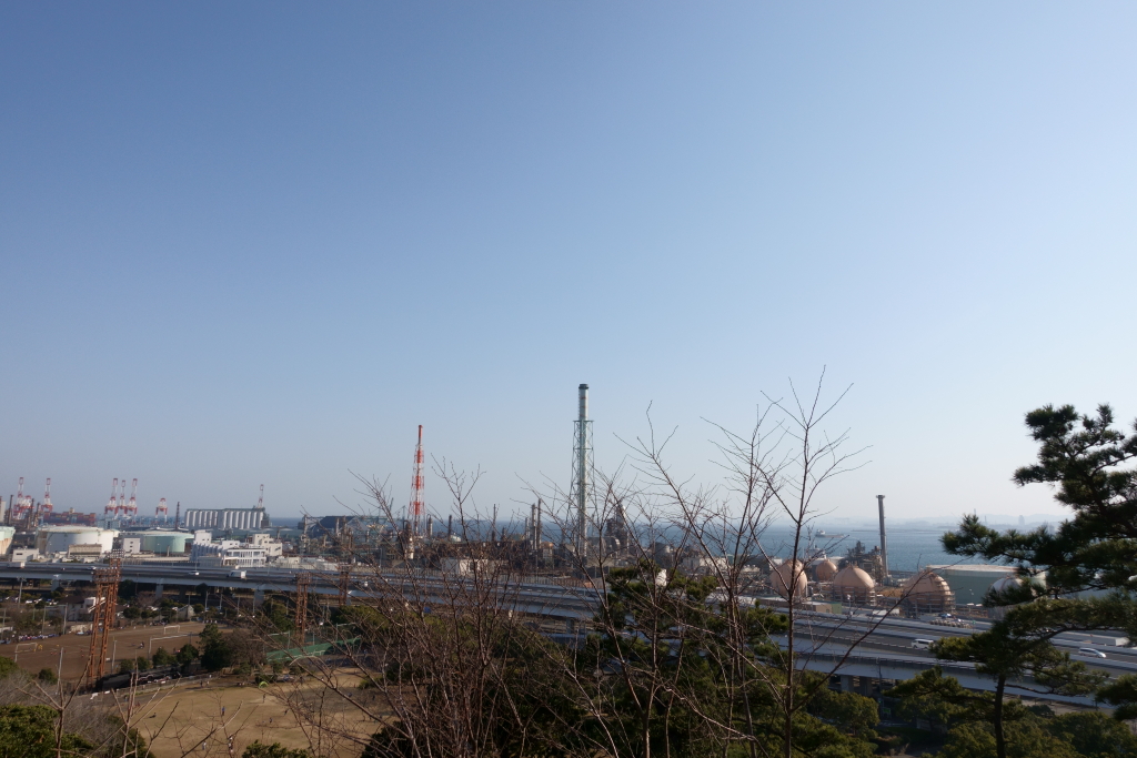 南門の向こうは工業地帯。もともとは海だったエリアなので 南門の当たりの崖は海食崖でしょうかね