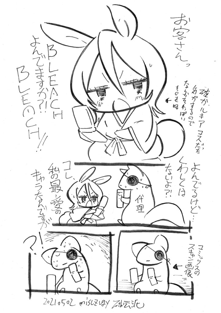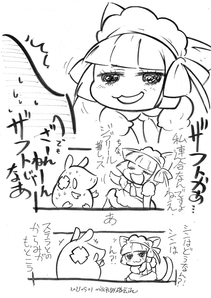 そんなわけで予定より早くカメラ帰ってきました 修理交換したパーツも帰ってきたので 付属品の買い替えの必要はありませんでしたやったー この手の修理で一緒に帰ってくる交換パーツどうしたもんですかね ほとんど捨てちゃったけどたぶん実家あさればVHSのヘッドとか出てくると思うぞ 4/7 ・オッドタクシー(新番組) なんかまたこういうだらだら駄弁る系の奴かなあとか思っていたら サスペンスものなのか。ちょっとゾワっとしたぞ 世間を騒がす女子高生失踪事件に自宅の押し入れに居座っている何者か 不良警官と街を騒がすゴロツキの関係 SNSに投稿された画像に映り込んだ彼の姿 それぞれの登場人物がそれぞれにみな一癖二癖あって怪しい どういう方向に進むのかちょっと読めない。 思ったより楽しめそうな雰囲気ではあるかな ・転スラ日記(新番組) 転スラのスピンオフショートコメディ ちょっとテンポが微妙というか、キャラの造詣の違いに慣れない(苦笑) まあこういうのはボチボチ楽しめればいいかな ・聖女の魔力は万能です(新番組) なんか雑な異世界召喚が発生したぞ!?と思ったら主人公だけ放置プレイってひどいな(笑) 聖女召喚で二人召喚されたのに王子が片方だけ聖女扱いって そら部下も困るよなあ。主人公もすごい所在なさげだし ハーブの植生が似ていることをきっかけに研究所職員になる流れはいいんだけど 研究所とは名ばかりのポーション製造職ってなんだこりゃ 製造過程もなんかすごいざっくりしてるし (素人新人だから適当な仕事を与えただけかもしれないけど) 負傷兵やポーションを使った看護の描写もなんか微妙 全体的には悪くなくきもちよく見れる感じではあるのだけど いろいろ雑さが目立ってなんかもったいないなあ… 4/6 ・やくならマグカップも(新番組) 多治見市のフリーペーパが原作なのかこれ 父親の会社が倒産して母親はずいぶん前に亡くなっていて(過労?) っていきなり結構重たい設定もってきたなあ 陶芸部、窯の管理とかどうなってるんだろう? 二話構成かなと思ったら後半は多治見市観光PRだった ・髭を剃る そして女子高校生を拾う(新番組) もっと緩い感じの内容を想像してたけど 家出女子高生の倫理観の壊れっぷりに主人公じゃないけど絶句 善意ではなく純粋に「(子供だし)ストライクゾーンではない」から手を出す気にもなれないというのは わかりやすいところではあるけど、すごいリスキーな状況だよなこれ 二人の関係がどんなに健全であっても危ういバランスの下に成立してるわけで 思いのほかサクッと面白く見れはしたのだけど いつどうなってもおかしくないという妙な緊張感で変な汗出るぞ いまのところ「嫌なキャラ」がいないから見やすいけどさ 4/5 ・マジカパーティ(新番組) カードを削ることで変化(進化)するというのはちょっと面白いギミック モンスターというよりいろんな身の回りの無機物に動物が融合したデザインなのね 主人公が魔法使いとなる経緯とその使命の見せ方は簡潔で分かりやすいけど ちょっとダンスミュージック(?)がまだ馴染んでない感じかな ・ドラゴン家を買う(新番組) 泣き虫で弱いドラゴンが安心して住める家を探すという出オチっぽい設定だけど これ、ずーっと物件探しを続ける内容なのかな しかし勇者一行非道過ぎない?!(笑) ・メガロボクス2NOMAD(新番組) まさかの二期。そんなに評判良かったのかこれ? 前作から五年、地下ボクシングで薬におぼれ自暴自棄になってるジョー あいからわずギアの設定いらねえなあこれ ・Seven Knights Revolution(新番組) 魔物に蹂躙される村々、生存者を探す汽車 ビジュアルは一瞬よさそうって思ったし、戦闘シーンも力入っててよかったのだけど これ学園ものなのかあ…結局そういうとこに落ち着いちゃうのかあ ・戦闘員派遣します(新番組) 原作暁なつめってこのすばの作者か 世界征服目前の秘密結社が征服後の戦闘員のリストラ問題と 資源環境問題を解決する一環で地球型惑星侵略に乗り出す物語 キャラ同士のやり取りはポンポン進んで楽しいものの なんか全体的にテンポが悪いというか 登場人物にイラっとしてしまう部分が多く正直なんだかなあ 急に描きたくなったので久々に描いてみた「しばいみち」もう結構忘れてる