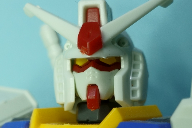 昨年先行販売されたガンダムベース限定版と 今月発売されるフルパッケージは武器付き 昨年発売されたライトパッケージは武器無しですが 正直武器と手足は分割やパーツ構成の「新発明」が起きにくい箇所なのでなくていいかなと ボディや顔は「こうきたか!」という面白さがあって まだまだ切り分け方やギミックの仕込み方の工夫の余地がある個所なんだなあとにんまり 特にこのキットの見どころの一つは「目」の表現ですね