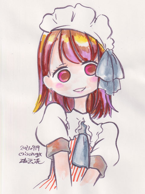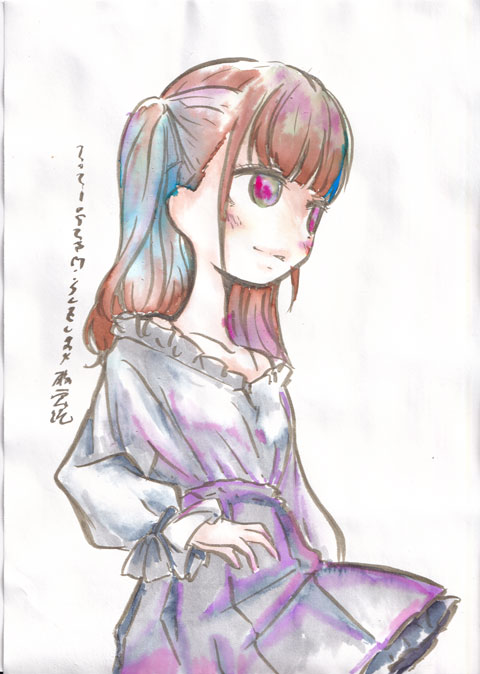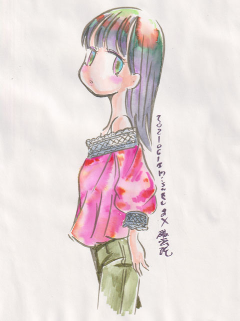 RX100M5は望遠性能は低いので撮影原寸でこのサイズです コロナワクチン 僕は受け付け開始直後10分ぐらいでサイトにつながって正味30分かからず予約できて 特に何のトラブルもなくサクサクと二回とも接種は終わったのですが びっみょう〜〜〜〜〜〜な出てるんだか出てないんだかわからない副反応だけで 正直面白くない 世間では「体温が下がる」「異様に肉が食いたくなる」みたいな 変わった副反応の人もいるらしいので自分だとどんなの出るんだろうとか思ってたんですが… せいぜい全身が筋肉痛みたいに痛くなったぐらいでした。しかも半日 あとは一回目の時三日程仕事が手につかないぐらいぼーっとしてたぐらいですね なんか微妙すぎて面白くない。 横浜は接種開始が遅かったので、ワクチン接種レポートみたいな旬のネタに乗るにも遅すぎだったし (まあ、正直年末ぐらいまで待たされると思ってたので、 国が確保した全人口の8割分のワクチンがもう終了とは思ってもいませんでしたわ) とりあえず正倉院展には間に合った あとは予約競争に負けないよう気を付けるだけだ …今年は仕事がたてこんでて楽しみにしてた鳥獣戯画展行きそびれましたからね 正倉院展ぐらいはいきたい 9/20 ・ぶらどらぶ(最終回) この話って究極的には「マイは存在をほのめかすだけで画面には一切出す必要がない」のよね なぜならこの物語は「バンパイア少女と変態少女の百合」などではなく 「マイと言う人外の魔性に魅了された者たちが正気を失っていく」物語だから そもそもマイが「人から直接血を吸えない」というのも怪しいところで 人から吸血するよりも効率のいい餌「場」を「貢」がせてる 献血部をはじめとした夜間部(いや、学校全体)は働きアリのように 血という供物と飽きさせないためのイベントを提供するための奴隷であり その役割を終えたら捕食される運命にある …そう、ほのめかし真相を煙に巻いた最終話は正直このシリーズで一番面白く見れた 最終話は良かったけどそこまでがなんか思ったよりパッとしなかったのは残念 たぶん話の中心となる部分を描くより全力で遊ぶほうに注力しちゃったんだろうなあ ・死神坊ちゃんと黒メイド(最終回) 面白かった。坊ちゃんとアリスの関係だけでなく アリスの母親の死と魔女の関係。 坊ちゃんが呪いをかけられた「場所」が墓前という符号 思ったよりも入り組んだ設定や伏線を垣間見せつつも なげっぱなしに感じさせない物語の締め方はすごく良かった 二期が予定されてるようなので楽しみ ・探偵はもう死んでいる(最終回) 一話と最終回だけ面白かったなこれ 間のエピソードは全般的に半端でなんか怠い印象 シエスタ亡き後のヒロインである渚 別人格(姿も違う)にSPECの幹部ヘルとアリシアを内包し、 さらにシエスタの人格まで宿してるという 一人で四役という詰め込みっぷり(苦笑) シエスタの人格が現れる、死者とのつかの間の邂逅というクライマックスは アクションシーンの力の入れようもあってかなり良かったし、 そこから物語の締めもよかった これで中盤のダレ具合がなければもっとよかったのになあ いつもの落書き もう一枚描く予定だったけどなんか失敗したから三枚