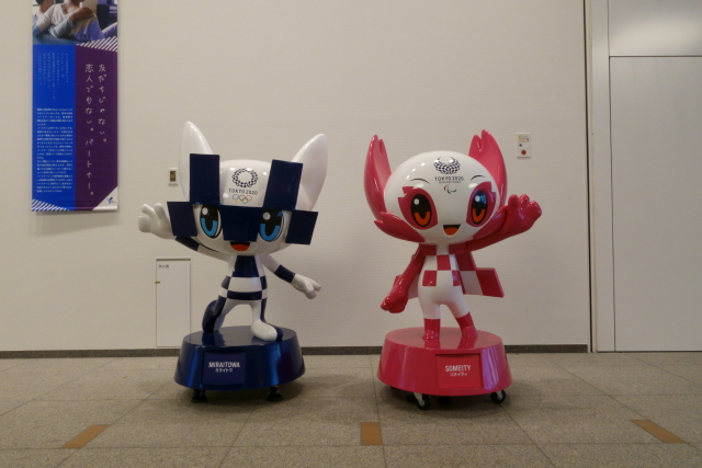 こっちはピカチュウとかに比べれば目立たない場所なので 駅に向かう人が素通りするだけでひっそりとしています 新しく増設された改札出てすぐだから場所悪くないと思うんですけどね 7/12 赤レンガ倉庫にオリンピックモニュメントが設置されたので どうせライトアップされるだろうと夕方に行ってきっました