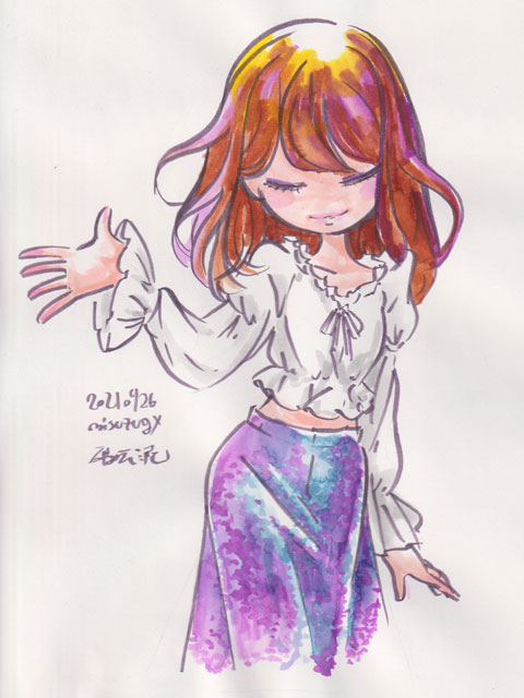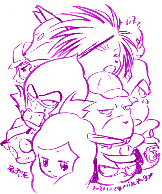 (去年年末に描いた絵に色付けました↑) ぼくはアニメで芸人のネタをやるというのにちょっと否定的なのですが 元ネタである「フォークダンスDE成子坂」を知らないので 「元ネタに引っ張られずに」素直に見れるのではないかと 去年から公開を楽しみにしてたのですね (素直に楽しむために「フォークダンスDE成子坂」のネタを一切検索とかしないようにしてた) で、第一話 かなり探り探りやってる印象 ダテコー監督作は序盤探りを入れてきて中盤頃からグンっと面白くなるので この段階ではまだ何とも言えない感じ ただ、コント中に演者が笑っちゃってるのはちょっとマイナス この慣れてない感じが今後どう転ぶのだろうか 「なりあガールズ」はどうにもならずに終わったからねえ あの二の舞だけは避けてほしい インターネットラジオ「其れ、則ちラジオ。」の ディレクターズカット版もFANBOX限定で公開されてるので聞いてみたのですが …すごいなんというかかみ合ってない感じがすごい… 突拍子もない発言が「面白い」こともあれば 本気で戸惑って反応に困る場面もあり 「三回目が輪をかけてヤバイ」 「問題点の洗い出しに協力してほしい」 という監督の発言も伊達じゃない 本当にどうなるんだこれ 11/7 じゃそろそろシリーズ中盤の感想などを なんかずるずると見続けてるのが多いので思ったより見てるの多い… ・白い砂のアクアトープ 実質くくるがやろうとしてることって「経営」で しかも各種企画立案実行と一定の結果をだすという実績もあるので 飼育ではなく企画部に配属されるのは結構納得 副館長の無茶ぶりが「鍛えている」のか「単にそういう人」なのかはちょっとまだ油断ならない 各登場人物の描写が乗ってきてストーリーも動きが出てきたので 前半より面白くはなってきたのだけど、その分前半の「沖縄の不思議な場所」みたいなのが ほぼなくなってしまったのは残念だなあ。 終盤に向けて「くくるの水族館像」みたいなのが見えてくる頃にまたそういう空気感に戻るのかしら ・異世界食堂2 二期というのもあって「こういうはなしだ」というのが受け入れやすくなってるせいか 一期よりも楽しく見れている。とはいえ毎回いろんな事情のいろんな人が食事するだけなので そう大きな出来事がないのは良いところでもありやや物足りなくもあり ・86-エイティシックス- 第2クール 共和国で「捨てられたかわいそうな子供」という憐れみと「戦闘狂であるよそ者」というやっかみ 双方の視線にさらされる86達の危うい立場とレギオンの大攻勢にさらされるぎりぎりの状況 いい調子で面白くはなってきてるんだけどまたここにきてシンが不安定になってきたなあ こういう描写に物語が足引っ張られなければいいのだけど ・MUTEKING THE Dancing HERO いろいろと伏線が回収されて物語も動き始めたのだけど なんか進行に無理やりブレーキかけてる感は否めず ・無職転生 〜異世界行ったら本気だす〜 第2クール 時間の経過とそれぞれの成長そして確執と 緩急をつけてとても好調に推移している。面白い 正直タイトルで損してるタイプの作品だと思うなあ ・月とライカと吸血姫 訓練のしっかりとした描写と打ち上げが近づく高揚感と不安 二人の関係が徐々に近づいていく様子もよく盛り上がってきた しかし思ったより早く打ち上げのエピソードきそうだなあ もうひと山ふた山何か仕掛けがあるのかしら ・やくならマグカップも 二番窯 確実に一期よりも登場人物の描写が良くなっていて ついでに作画のノリも良くなってかなり楽しめるようになってる しかし後半の声優コーナーはあいからわずでなあ… ・吸血鬼すぐ死ぬ なんか流れで見てるけどギャグのテンポがよく 思った以上に楽しく見れてる。しかし吸血鬼の幅が広いなこれ ・境界戦機 良くも悪くも羽原監督だなあ 思ったより楽しめてはいるけど期待したほど面白くはなってない感じ 主人公がレジスタンスとして活動する決意するまでの遠回りを そこそこ丁寧に描いているのは良いと思うのだけどね ・takt op.Destiny 一話ではあまりフックを感じなかったのだけど 二話三話の発端となる過去エピソードのおかげでぐんと面白くなった このままいい調子で最後まで行ってほしいな ・真の仲間じゃないと勇者のパーティーを追い出されたので、辺境でスローライフすることにしました 毎回毎回片田舎で甘酸っぱい生活をするレットとリットの初々しいバカップルのメインパートと ギスギスとした崩壊した勇者パーティの描写の落差がすごい ここまで無能な「賢者」って珍しいな。こいつのせいで勇者パーティ崩壊してるし レットの代わりに勇者パーティに参加したティセ こんなギスギスした喧嘩ばかりしてるパーティに入っちゃってかわいそう ・プラオレ!〜PRIDE OF ORANGE〜 アイスホッケーにはまった刺繍部の面々が本格的にホッケーをはじめ 「一番楽しい時期」を過ごしてるのはかなり良い (流石に「刺繍」がプレイに役立つみたいなお約束はなかったか) 
