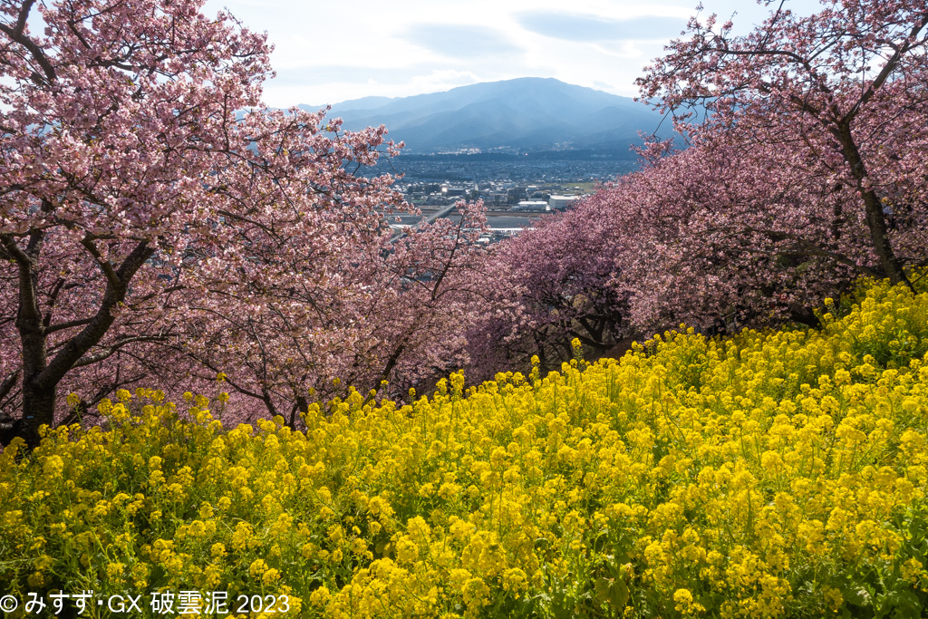 河津桜はいつもの松田。こっちはいいタイミングですが 雲が多く富士山は見えませんでした あと、到着が遅かったので曽我梅林はあきらめました
