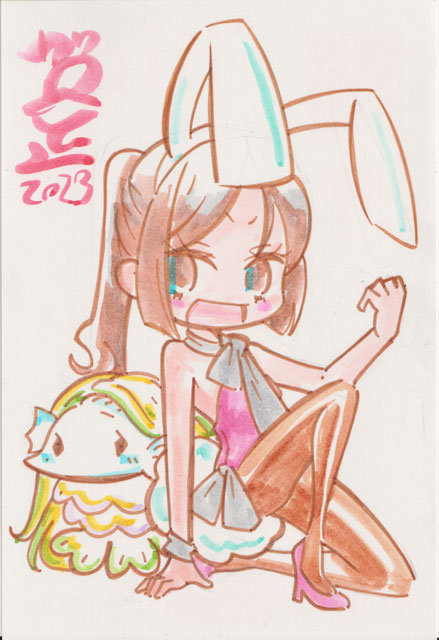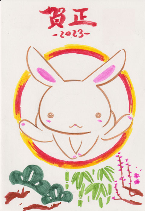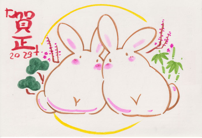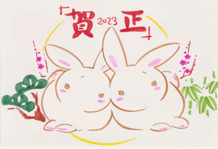 今年はこんなところから 1/4 あけましておめでとうございます 今年もよろしくお願いいたします まだ新年更新絵が描けていませんこまったものだ そんなわけでまあいつもの人様に送った年賀状です