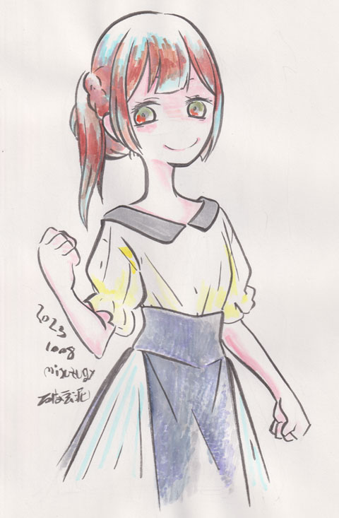 11/23 ・駒田蒸留所へようこそ PA新作の映画。今回はTVシリーズじゃないのね 長野の小さな蒸留所を舞台に、震災で失われたウィスキー独楽の復活をめぐる物語 主人公のwebニュース記者のやる気のなさはかなり問題があるのだけど、 その奮起(取材への取り組みへの変化)のきっかけが 「周りの人たちもべつに”やりたいことを仕事にしている”わけではなく ”いろんな縁でかかわったことが今につながってる”だけ」 ということに気づいた、というあたりは良い所 小さな会社の若社長の頑張りだけではなく 沢山の同業他社、関係の悪くなった兄の協力も得て 復活へとつなげる展開もよい ただ、どうも作中の時間の経過があまり感じられず 「なんか簡単にウィスキーできちゃった?」みたいな気持ちになりかけてかなり危なかった こういう「地域の空気感」みたいなのはほんとPAらしくてよいのだけど やや物足りないというか尻すぼみ感もあるところまでいつものPAだったなあというか(笑) 上げるの忘れてたやつ ゲームショー前に告知があったので そのタイミングで上げようと思って描いてたら奈良行く直前までかかった 幻日のヨハネNUMAZU IN MIRAGE絵。年明け二月に発売ですってよ