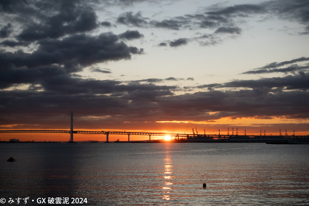 朝は愛狩らず雲が多いですが いいタイミングで水平線の雲が切れてたのはラッキーです