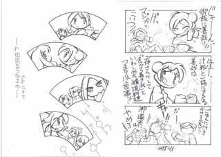「8×8=64」(98年初冬) 「東鳩」本(なぜ??)一月頃あったリーフ即売会用に数時間ででっち上げた 中身はすべてコネタ(極道!!)その一部TOPに飾ったりしてたので みたことがある人は見たことがある。かもね ちなみに鉛筆下書き(極道!!)表紙は紛失 *2004/10/23…原稿を発掘したので掲載 あかり編 琴音編 志保編