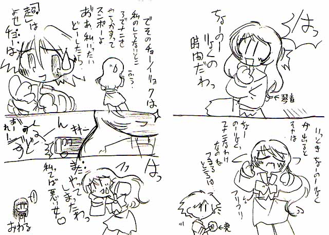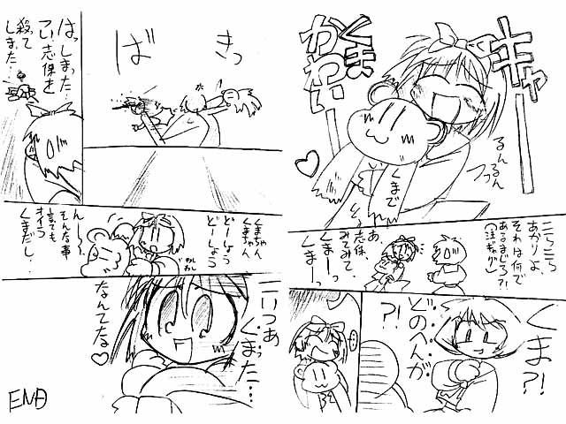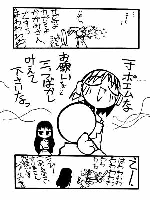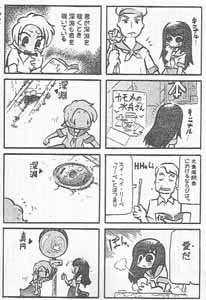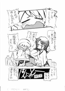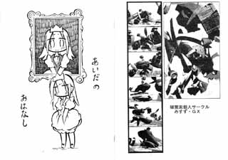 「みすず」第四号(97年冬) 投稿没作品集第六弾。ちなみに投稿したのはこの漫画を描きなおしたもので さらにこの半年後。雑誌はアワーズ。 ページ数が少なかった為に後半は某南国猫桜様の同人ゲーム「戦えこにゃんこ」 の漫画を勝手に描いた。テヘ