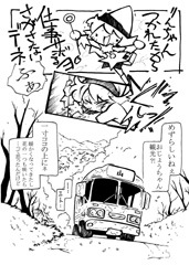 オハカの妖精(2007春)ちゅーわけで「蜂列車」様の本に寄稿した リンちゃん漫画第二弾。前回変なネタを書いてしまった反省から 今回はちゃんとした漫画にしましたよ 春で尚且つ奈良から帰ってきてから描いたので 丁度仕入れてきた桜前線(100m三日)ネタ 当初はもう一寸違ったオチにする予定だったのですが せっかく出したバスの運ちゃんをオチにしたほうが収まりがよさそうだったので以下略