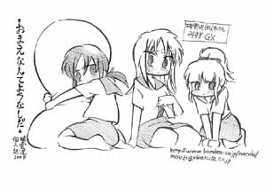 トちうのおはなし(2005年夏)ひさびさに爆猫以外の漫画。今回は投稿没作品をやりたかったんですが 現在ストックが無い(ちょっと持ち込み休止中)ので完全新作 内容は製作中の自主制作アニメのキャラと設定でサイドストーリー的なもの 肝心のアニメは年末完成を目指していますが… 多分来年までかかります。ばふーん