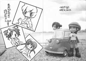 名物「ナイアガラ涙」(2004夏)ちゅうわけでピンキー本二号。前回の本がなんか半端な出来になっててことの反省から 「もう一寸ちゃんとオチつけよう」ってことで描いた一品 あいからわずのカレーネタですが、描いた後で「ココロのコロッケ弁当でもよかったんだ」 ってことに気付いて一寸後悔(笑) 最近完全に「プチフィギュア素材」と化してしまったピンキーですが ソレはソレとして早く4期出してください。 デフォの組み換えで9割満足できる人間には発売延期はちとつらいです。 自作ボディーだと、どうもネタに走りがちになるしなあ… 本のタイトルは、ミンダナオ:原作。只野和子:画「スターピンキーQ」より 表紙絵は、南天棒の「雲水托鉢」 表紙裏表紙のピン子達の並びを逆にするべきだったのは内緒