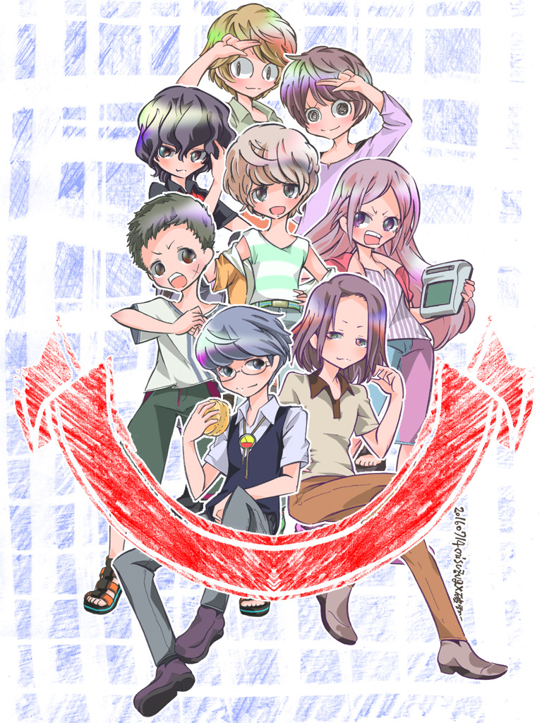 冬コミ看板用イラスト 081231 冬コミの本に色を塗って看板にした奴です 一枚二枚それなりにかけた奴があるとこういうところで使いまわせるので便利ですね 落書に色塗ってみたシリーズ 081120 買ったばかりのUSBメモリをなくして無茶苦茶へこんだので 勢いで描いた落書き。たぶんショタっ子 今日別のUSBメモリを鞄のポケットに入れたらまたなくなっていて 「エエー!!」っと思ったら今回と前回にこまとめて ポケットの折り返し(チャックの上の部分)から出てきました いやもう本当に自分駄目かと焦りましたよ 最初はこういうやんちゃっぽい感じにするつもりだったとか言うのは秘密 落書に色塗ってみたシリーズ 081114 そろそろストックの落書は終わりかな?! ここしばらくスケブにこういうファッションというか町で見かけた女の子シリーズを描いていたんだけど たまにはちゃんとCGで描いてみようとかいうアレデス 今年は結構絵かいてますね 落書に色塗ってみたシリーズ 081112 近鉄奈良駅前のアーケードあたりでデジカメを落として二時間後に 無事警察で保護できた記念落書 主線の色を変えてるのはpixivでそういう塗り方をしている人がいて 一寸オモロイなあって思ったからまねっこです 081103 落書に色塗ってみたシリーズ 秋っぽい感じの男の子二人組みを描きたくなったので以下略 紅葉はてきとう(笑 081030 落書に色塗ってみたシリーズ なんとなく描いた絵なんですが、何か顔の感じがいつもとちょっとじがった風に描けたので 色を乗せてみたんですが途中で塗るのが面倒くさくなって以下略 雰囲気はいいと思うんですよ 奥の鏡に映ってる人の腰が左手前の影です 081022 回顧シリーズ「あの時こんなの描いていた」 これも最初期に大学ノートに描いてた漫画。たぶん小学生の頃かな 奇面組を読んで思いっきり影響された内容。まあ影響されてばっかりなんですけどね 先ずこの頃は全く絵がかけなくてとにかくグチャグチャ しかもうちの兄が横から茶々を入れて勝手に書き直すので ページの7割ぐらい兄の絵になってる。しかも この頃にしてすでに手塚治か横山光輝と安永航一郎を足して7で割ったみたいな絵書いてるしさ 先日発掘しました。良く覚えてるのでショックはあまり無いですが とにかくエナジードレインです。 横の余白に中学か高校頃に「今描いたらこうなる」ってのが書き加えられてるんですが ぱっと見殆どかわりません。我ながらなんて進歩の無さなんだろう!! 081019 回顧シリーズ「あの時こんなの描いていた」 漫画を描き始めたのなんてもう小学校の頃だからずいぶん前なんですが 「女の子の絵は描けねえなあ」って思ってた頃になんとなく 定規の半円テンプレートを頭の上に付けてみたら女の子っぽくなって やったぜウオルフ!!とか思ったとかそういう話。 あの頃のノートの殆どは実家に残ってるのですが 改めて発掘するのは嫌なのでなんとなくそのときのキャラを記憶だけで書いてみました ヘッドフォンをつけてるのは、昔は耳がかけなくてヘッドフォンでごまかしていたから ちなみに、このキャラを描いた漫画のタイトルは「レッツゴー!ちえみ」 3pぐらいで飽きて続きは描きませんでした。内容も思い出せません 080817 夏コミの看板用に新刊の表紙に色をつけたものです 表紙っていつも最後に描くから毎度ギリギリなんですよね。いろんな意味で(苦笑) 080722 なんか妙に歯磨きしてる絵が描きたくなったので ざっくりと描きました。 071231 冬コミの看板用に急いで塗り上げた爆猫イラストです 今回の本の表紙用なのでいろいろアレデスがまあ一応 とにかく描くの久々すぎてキャラが似ないわなんだで以下略 絵が全然安定してないですが、まあ今描くとこんな感じだってことで