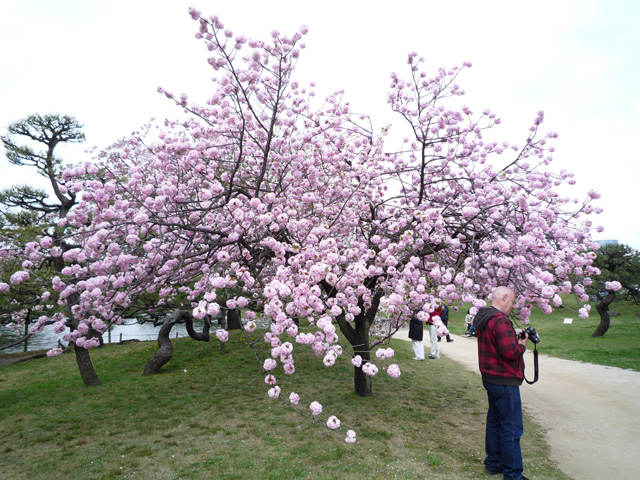 2012桜 というわけで浜離宮まで桜撮影のリベンジ 今年は池の中央に通っている橋が改修工事中で 夜間ライトアップは無いので昼間の突撃です微妙に変なアングルで切れてるのは すぐ横にブルーシートに包まって寝てる人がいたから